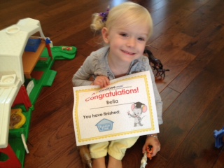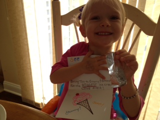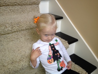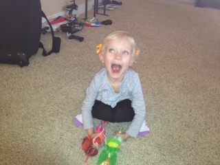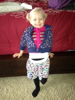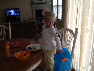 Bella’s new thing- after she eats she stands up and says, “Check it out.” She is showing us how well she is growing.