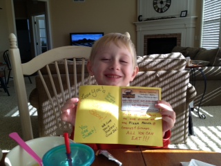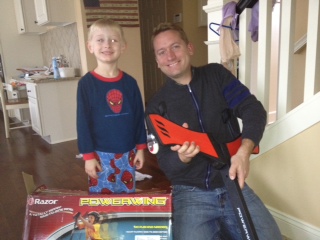 This is the big annual fund raising event for Cooper’s school, where students raise money and then walk around the gym in the school for about 30mins. He walked with us for a bit but then wanted to walk hand and hand with his friends. To raise money, Cooper had asked family and friends for donations and thankfully, received $165 of generosity. We found out later that Coopers’ school had a competition going for the students who could raise the most $$. It turns out that he raised the 3rd most and was fortunate enough to win a scooter. Oh my- we are very happy he won, but he already thinks he wins everything so this does not help us when we are trying to teach him you can’t always win. Our Cooper can be quite the good luck charm. Play a game of Candyland with him and you will find this out the hard way. Wanda would tell us that he would usually win somewhere in the neighborhood of 9/10 games played at daycare. Regardless, the scooter is awesome and we have all tried it out!